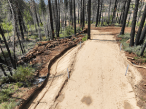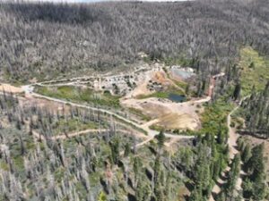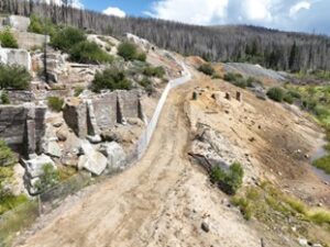 Reaching the site was no small feat, as it was located more than 40 miles from public roads and infrastructure near Portola, California. Crews mobilized equipment, temporary facilities, and materials through remote, rugged mountain terrain. The scope included disposing of legacy waste, developing onsite borrow sources, clearing and improving access roads, and installing culverts across tributaries to Dolly Creek and Little Grizzly Creek to support safe drilling operations.